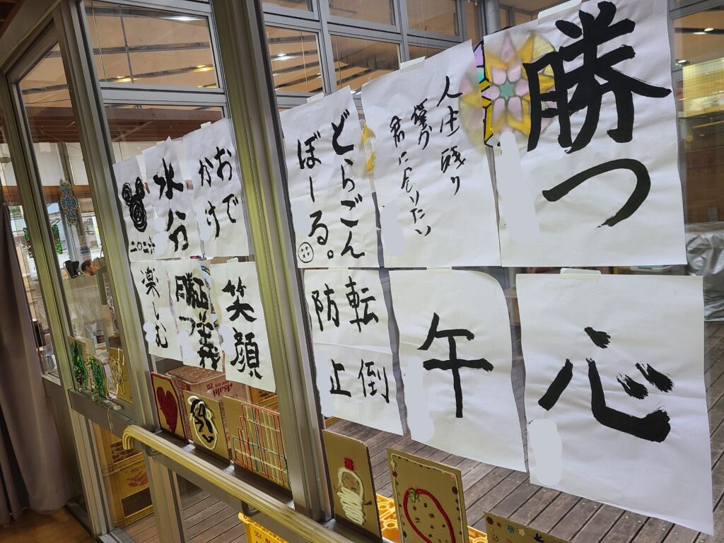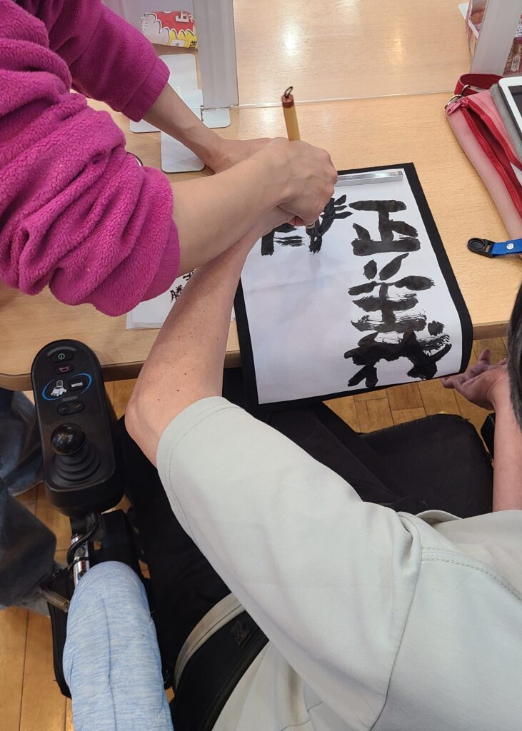 皆さん、毛筆を手に取り、新年の抱負や好きな言葉など、思い思いに書かれています。おひとりで書くのが難しい方は、職員と一緒に書初めを行いました。 本年も皆さんと元気に活動ができることを願っています。