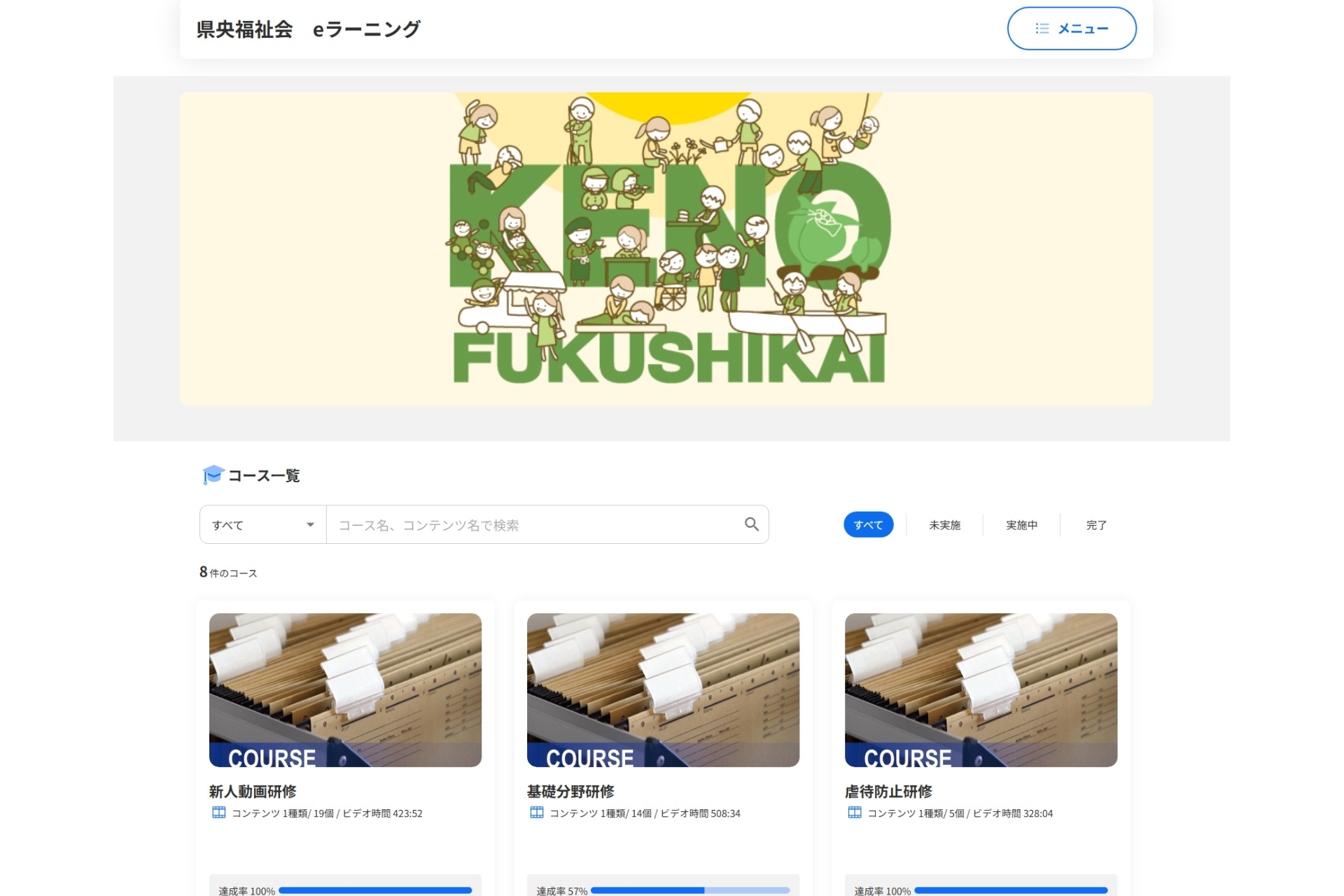 当法人では、インターネットを活用したeラーニングを導入し、職員の誰もが・いつでも・どこでも必要な情報を入手し学ぶことができる仕組みを稼働させています。